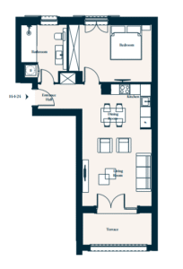 - Size: total area 64.3 m² of which internal 57.1 m² and terrace 7.2 m²