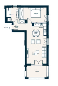 - Size: total area 70.9 m² of which internal 61.3 m², and terrace 9.6 m²