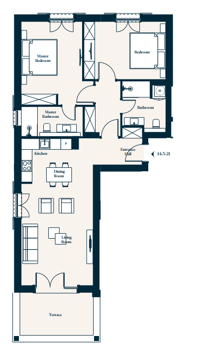 - 2 bedrooms, of which 1 with en-suite bathroom, and 1 separate bathroom