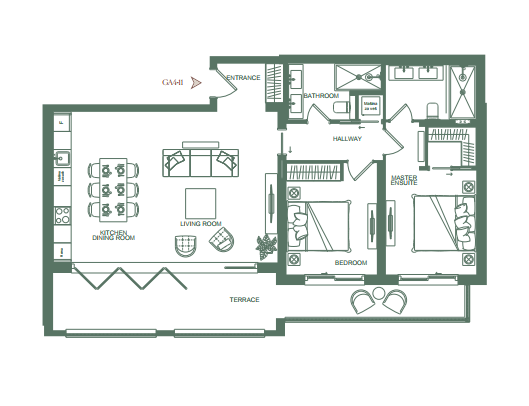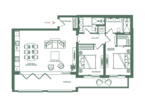 - 2 bedrooms, of which 1 en-suite bathroom and walk-in closet, and 1 separate bathroom