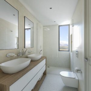 - Standard: Laufen & Catalano sanitary wares, Hansgrohe (or similar) bathroomfittings and accessories in chrome finish