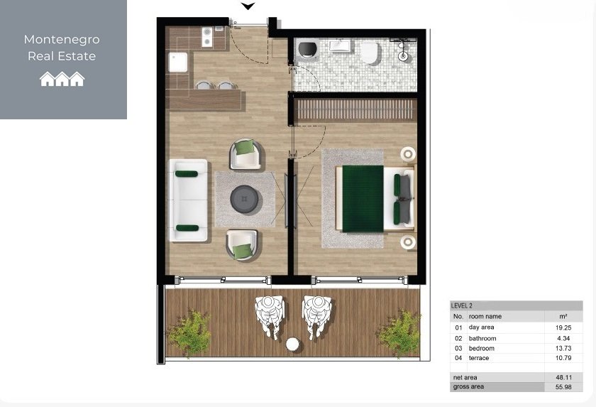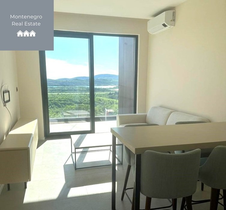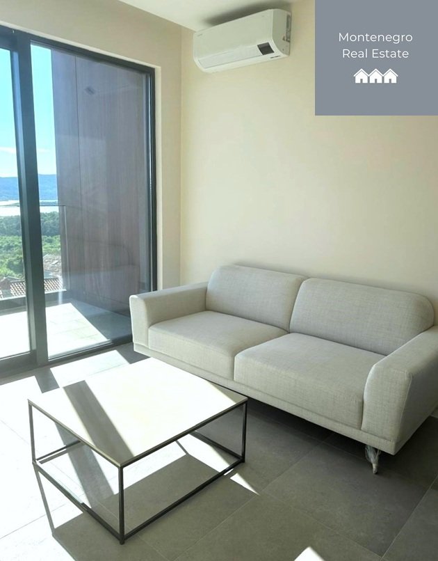 This beautiful apartment features an open-plan living space with a dining area and kitchen, one bedroom, one bathroom, and a terrace with stunning views of Tivat Bay. It comes equipped with basic furniture and appliances.