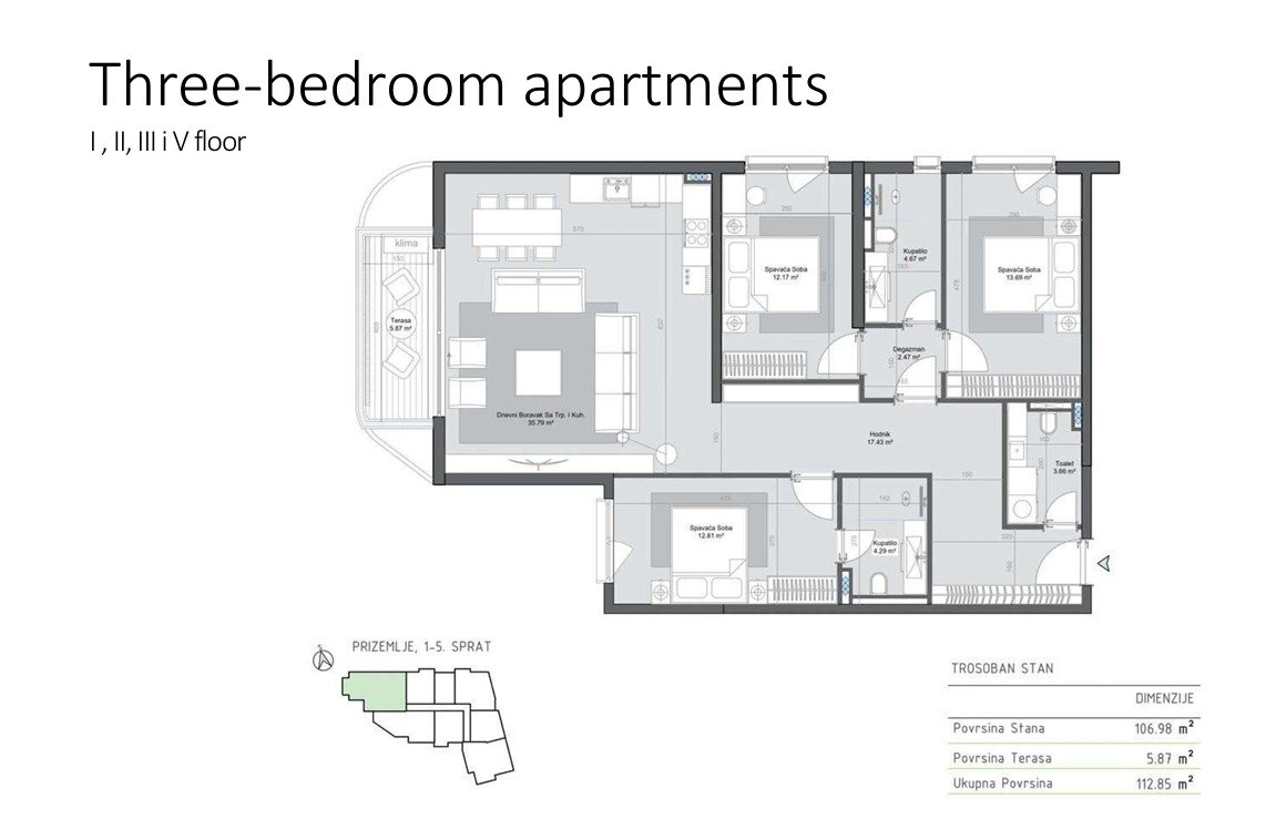 Three-bedroom apartments (113-124 m2): from € 276,300Contact us for more information or a viewing via +382 67 057 819. We are expats living in Montenegro since 2019 and are happy to answer any questions you may have about this project or the area.