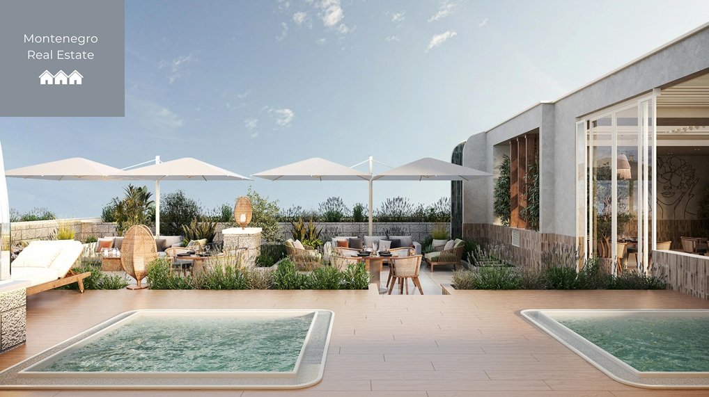 This five-star mixed-purpose hotel and residential complex is the first of its kind on the Bar Riviera, offering modern luxury in harmony with nature. Located directly on the seafront in the heart of Dobra Voda, it provides a perfect blend of high-end living and investment potential. The cascading design ensures uninterrupted sea views from every apartment.