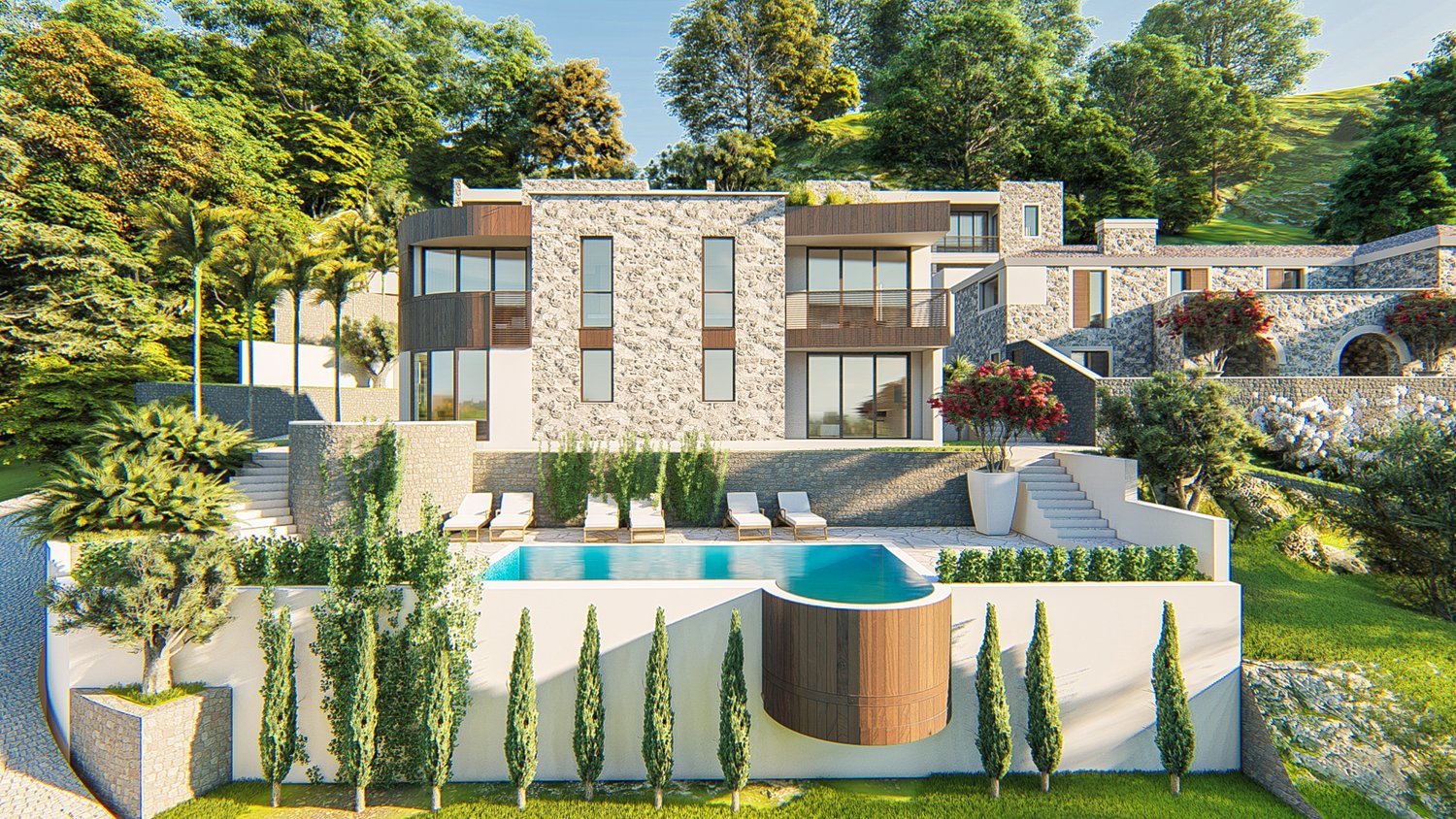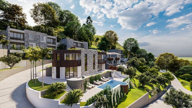 Also available: stunning villas with panoramic sea views, 306-406 m² with 4 suites, 4 bathrooms, a private swimming pool, and underground garage. Price: €1,170,000.