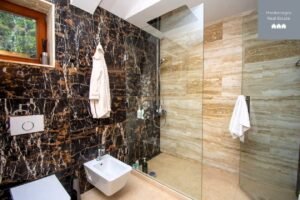 - Floor covering: Marble, Travertine paving, Triple-layer parquet