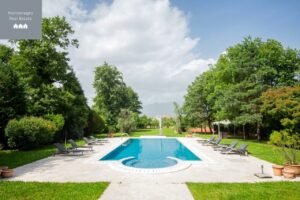- Swimming pool, basketball court, orchard, and covered parking