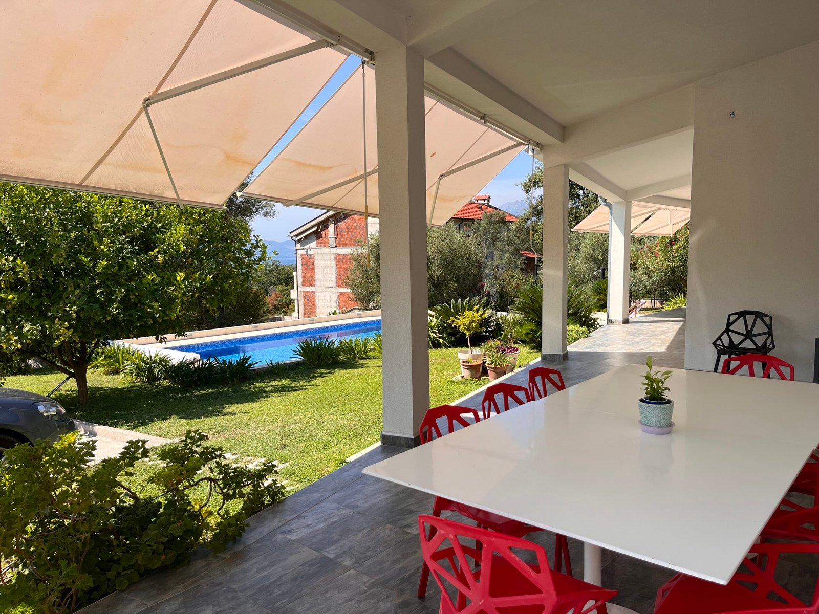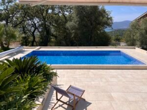 Discover a stylish and contemporary home in the peaceful hills of Kavac, just a few minutes from both Tivat and Kotor. This beautifully designed property combines modern comfort with Mediterranean charm, offering sea views, generous outdoor living, and a private pool surrounded by landscaped gardens.