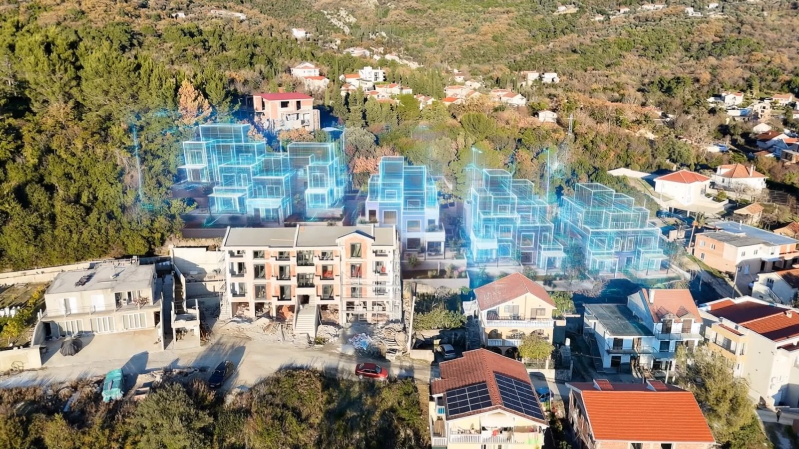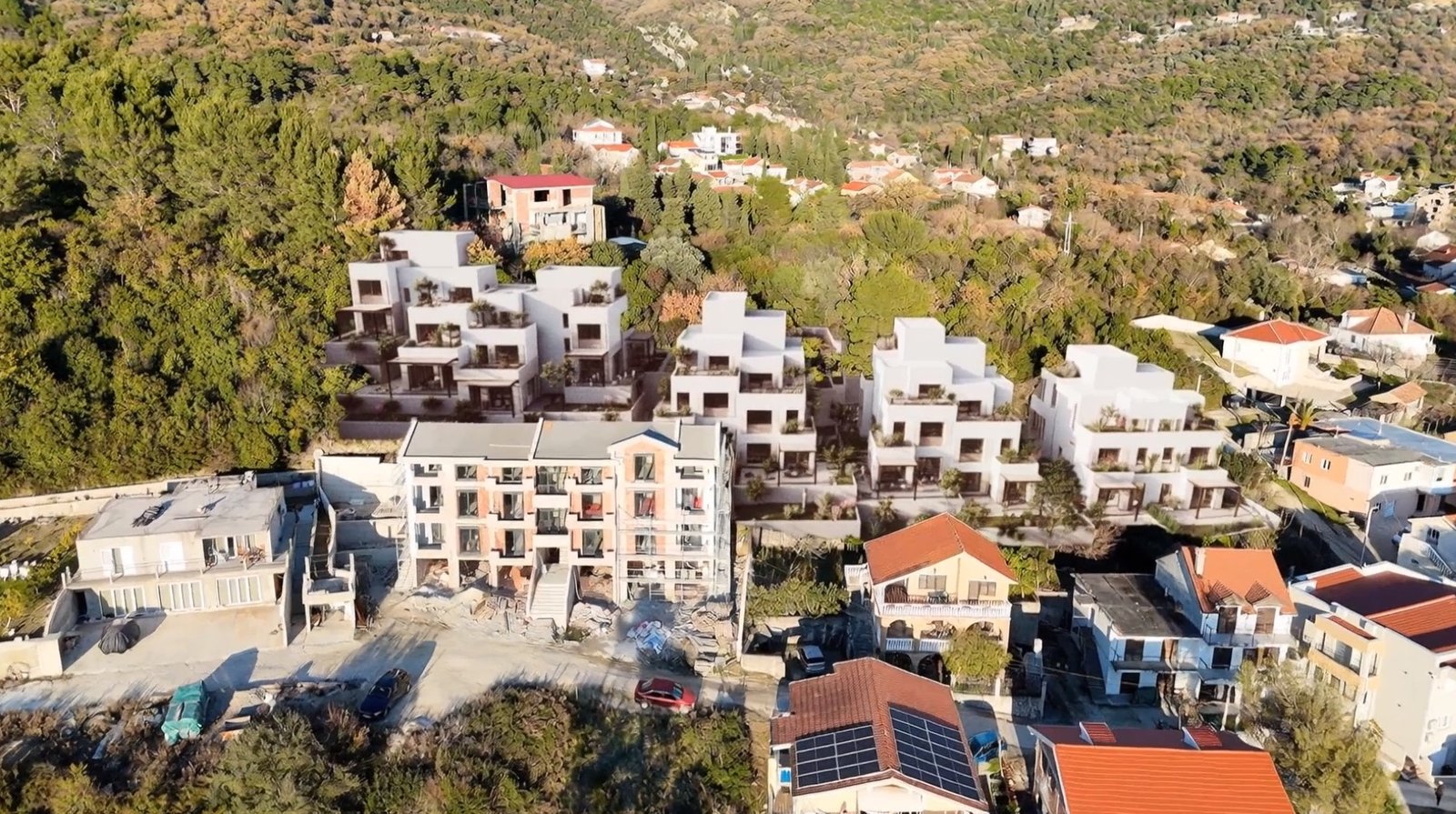 Modern townhouses surrounded by greenery in Tivat