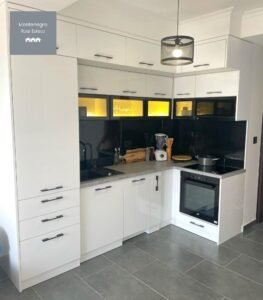 - Open-concept kitchen, dining, and living area