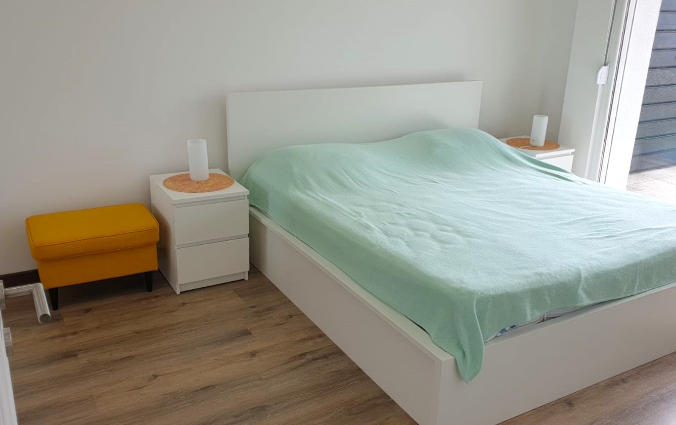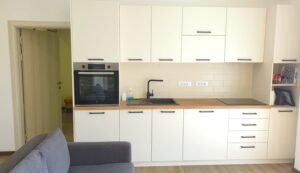 - Open space living with kitchen, 2 bedrooms, 1 bathroom