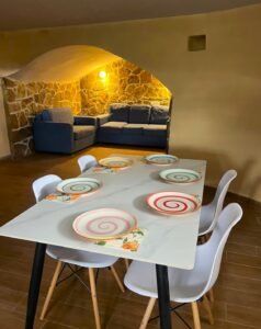 The house offers 160 m2 of living space and is sold fully furnished, ready for immediate move in. Natural stone walls, traditional masonry and warm interior details create a timeless atmosphere. The layout includes 4 bedrooms, 2 living rooms and 2 bathrooms, making it ideal for a large family, boutique holiday home or countryside retreat. The ground floor benefits from underfloor heating, while the upper floor features charming wood burning stoves that provide both authenticity and cost effective heating.