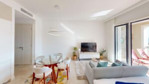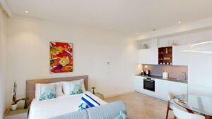 Designed with a focus on functionality and aesthetics, the apartment features a bright open plan layout that seamlessly combines living, dining, kitchen, and sleeping areas. High quality furnishings and premium appliances create a turnkey home, ideal for both personal use and rental investment. Residents benefit from access to a private pool, multiple beaches including exclusive private areas, and a full range of resort services.