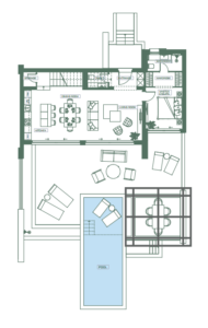 - Ground floor: total sellable area 176.3 m², footprint 105.2 m², paved area 88.1 m², swimming pool 30 m²