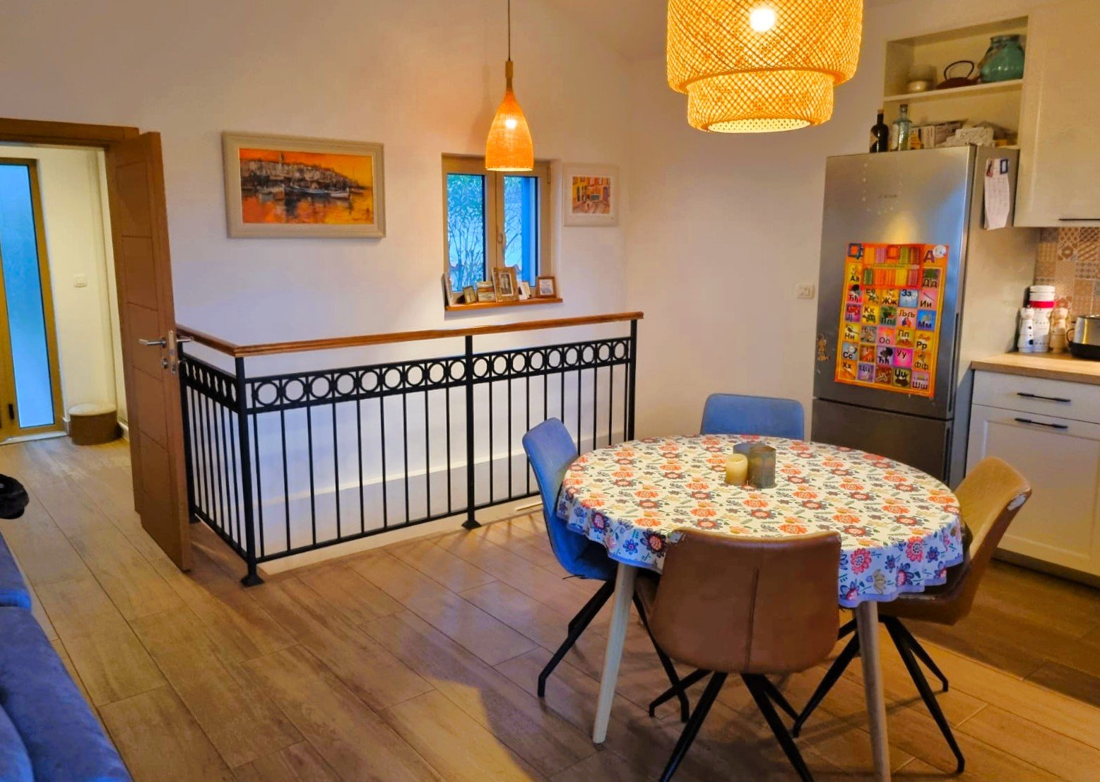 - Bright living room with dining space