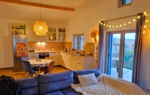 - Fully equipped kitchen with terrace access